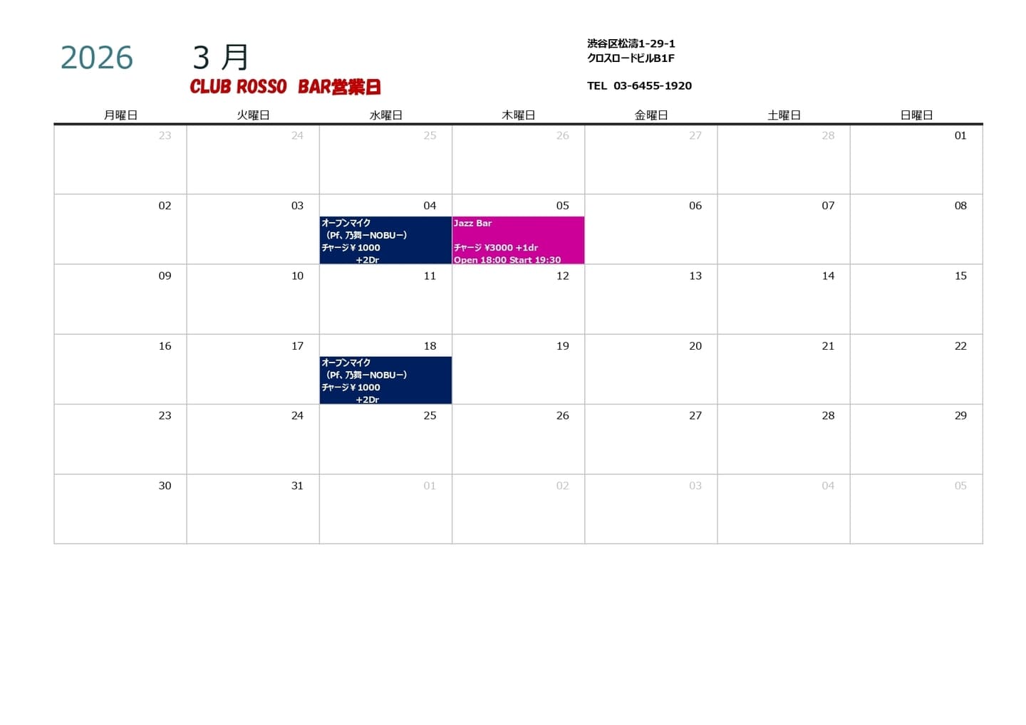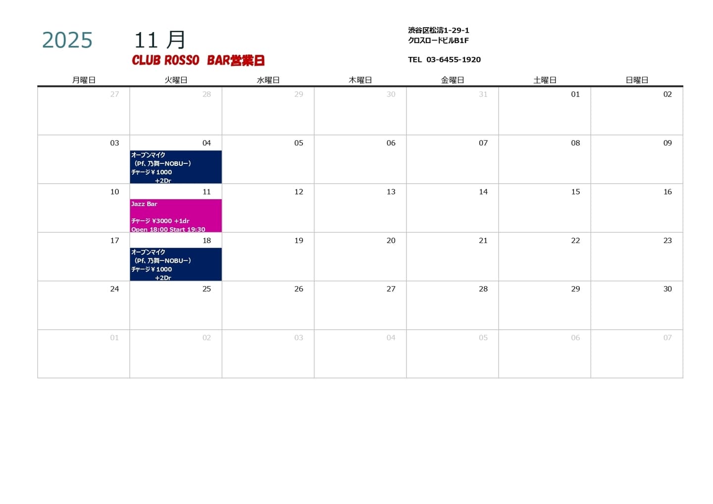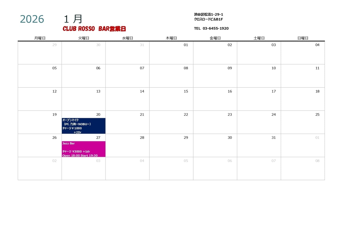 Welcome to Shibuya Club Rosso official home page.