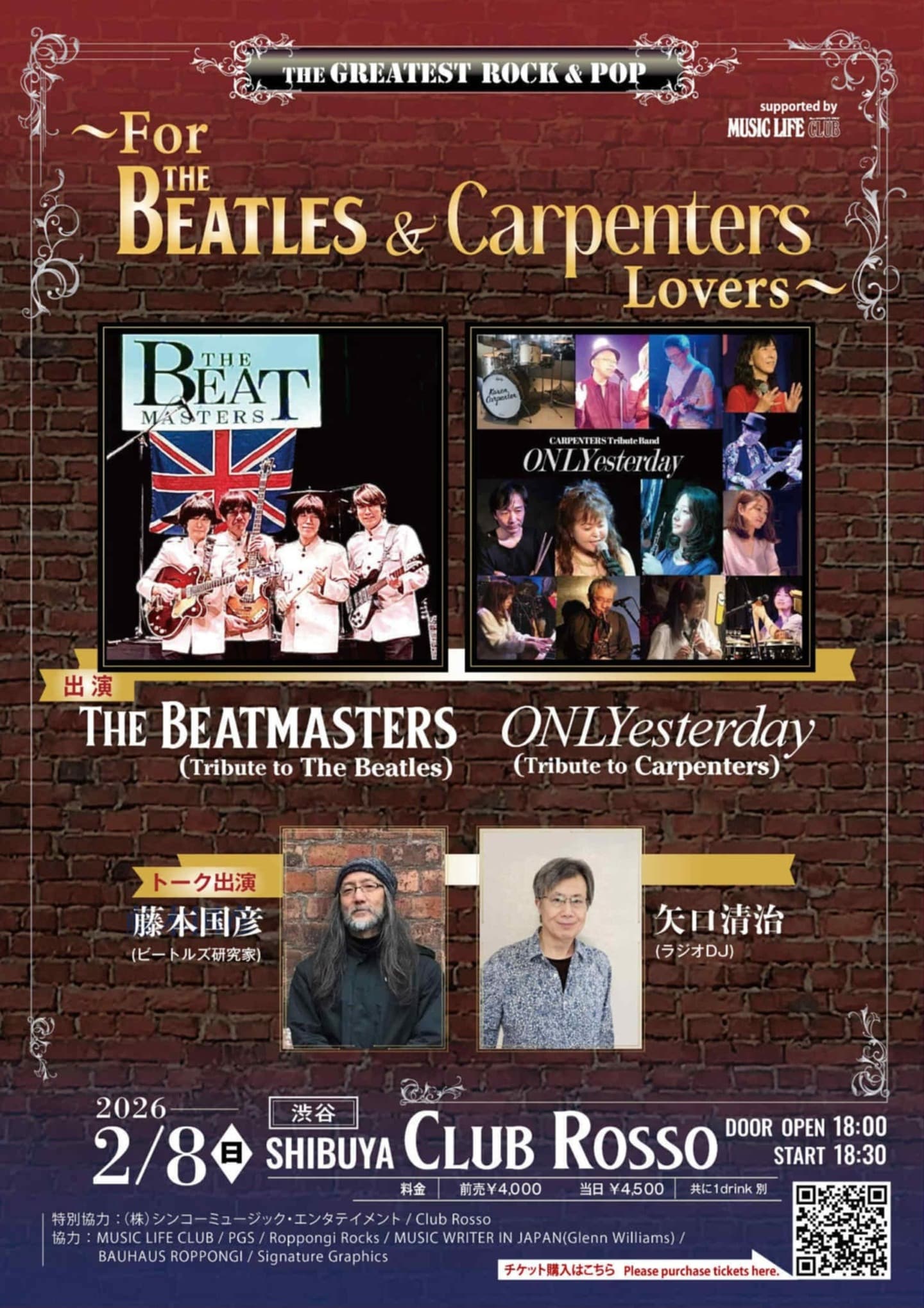 【夜の部】The Greatest Rock & Pop 〜For The Beatles & Carpenters Lovers〜 supported by MUSIC LIFE CLUB